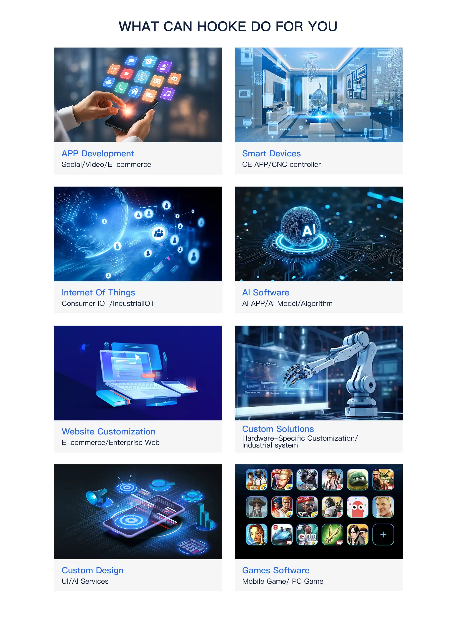 Productos principales:DESARROLLO DE APLICACIONES, DESARROLLO DE IOT, PERSONALIZACIÓN DE IA, DISPOSITIVOS INTELIGENTES, PERSONALIZACIÓN ESPECÍFICA DE HARDWARE